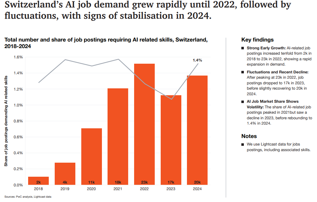 - 56% wage premium for AI skills comparing workers in the same job with and without AI skills, up from 25% last year.