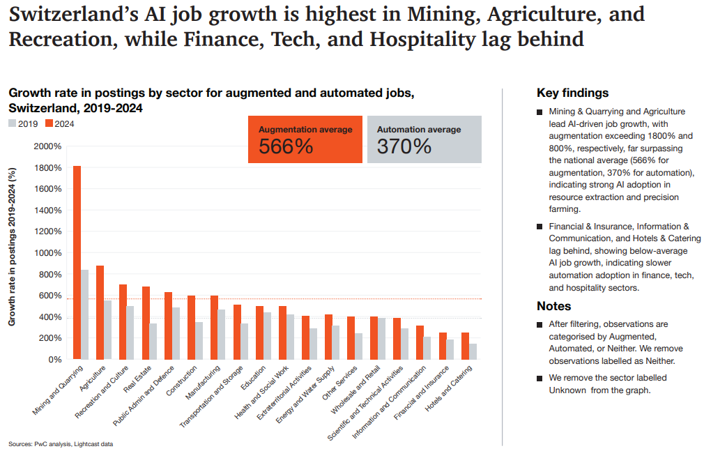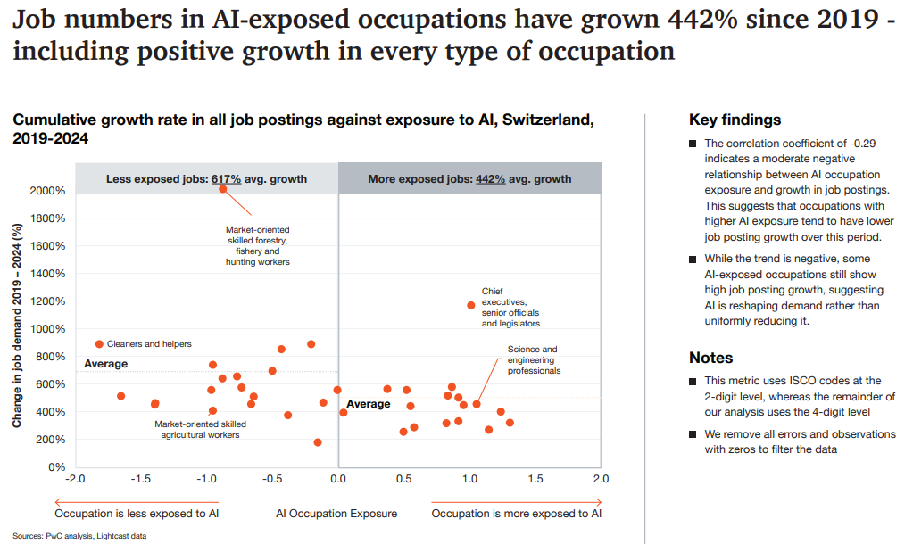 - 3x higher revenue growth per worker in industries more exposed to AI.