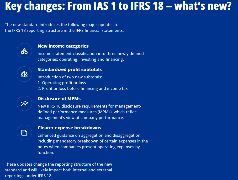 Details auch unter KPMG https://kpmg.com/ch/en/insights/reporting/ifrs-18.html. To keep details at glance, scroll down to the blue background, as this pictured below: