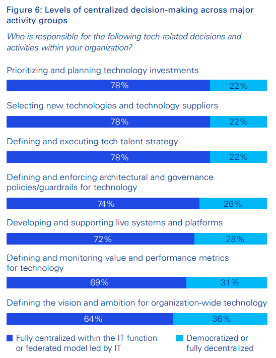 - When talking about tech maturity, 11% of firms say they’re fully scaled and work on continuous improvement.